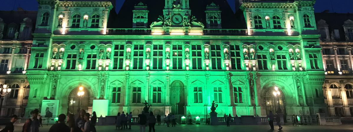 Paris city hall with green light