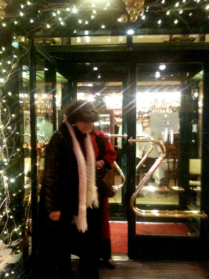 Leaving a Paris brasserie after dinner