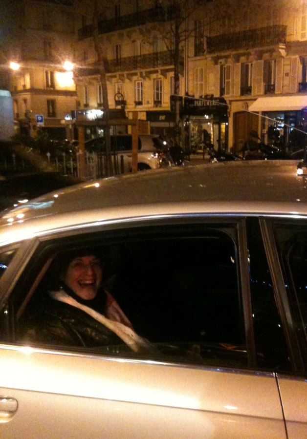Susan making her getaway in a Paris cab